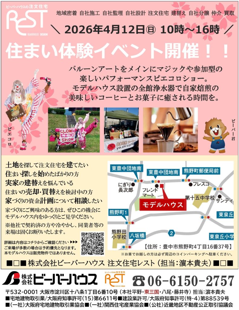 地域密着57年の実績を持つビーバーハウスが ●日時 ●クラウンによる参加型パフォーマンスショー 家づくりにご興味のある方 ビーバーハウスの注文住宅について、少しでも 株式会社ビーバーハウス 注文住宅レスト | |