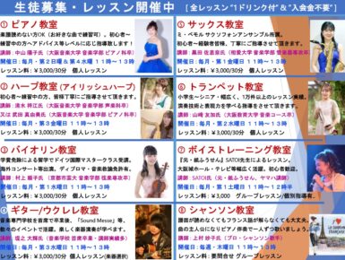 - カフェ『ベルウッド』(阪急・豊中駅徒歩2分)にて、有名講師による「音楽教室」を開催しております。