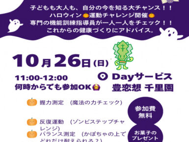 Dayサービス豊恋想 千里園では、ハロウィンにちなんだ楽しい「運動基礎能力テスト」を開催します👻