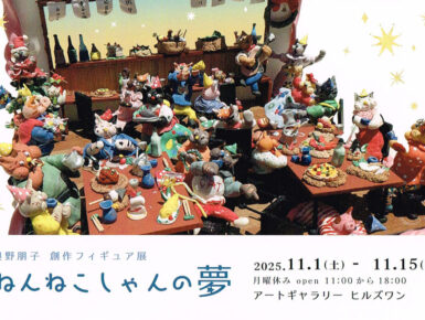 - 2025.11.1(土)~11.15(土)まで、豊中稲荷神社前のライフを少し上がった、アートギャラリー ヒルズワンにて11時~18時に、豊中在住の粘土作家、奥野朋子さんの創作粘土フィギュアの展覧会を開催します。