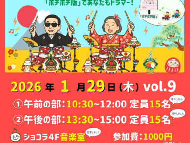 小中高生向けのインクルーシブなドラム体験プログラム「ショコドラ⭐︎キッズ!」vol.8 〜ショコラでドラムを叩こう!〜 を1月18日(日)に開催します!
