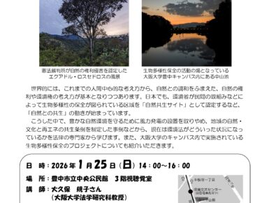 世界では自然との調和をふまえた自然の権利の考え方が基本となりつつあり、日本でも「自然との共生」の動きが始まっています。こうした中で、現在は環境法はどういった状況になっているかを法律の専門家から学びます。