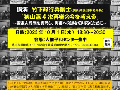 早智子さんと共に一雄さんの雪冤の時に向かって進もう!部落差別はアカン!冤罪もアカン!みんな集いましょう!