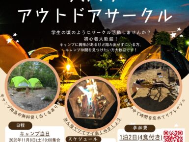 ソロキャンプを始めたけれど、やっぱり仲間が欲しいという方、キャンプに興味があるけれど踏み出せずにいる方、学生の頃のようにサークル活動をしてみませんか?
