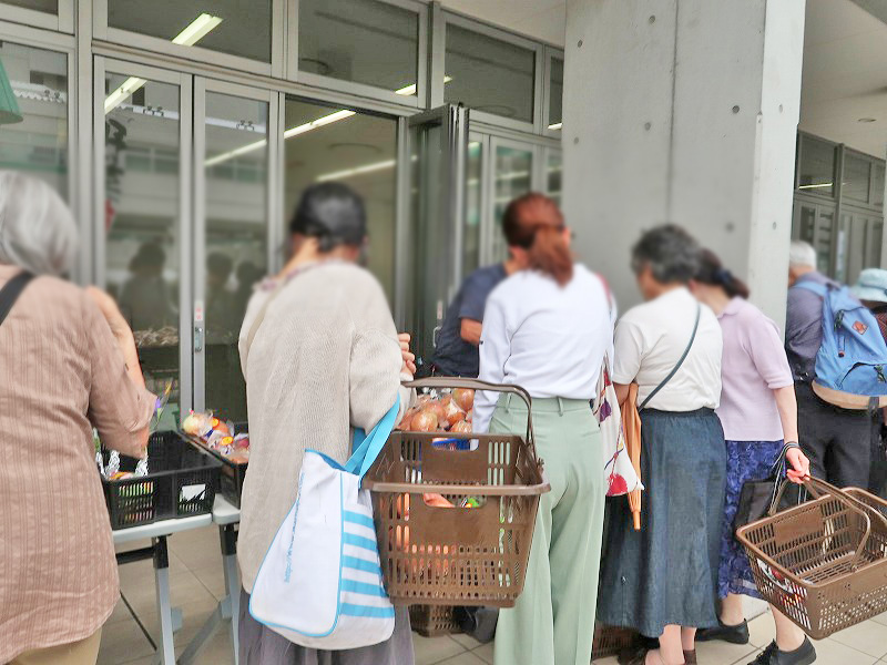 大盛況の中、1時間で終了した「コラボ朝市」。
