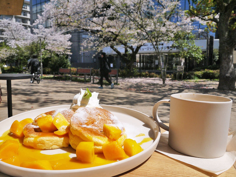 桜を愛でながら、パンケーキをいただきたいと思います♪