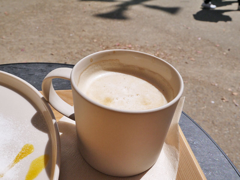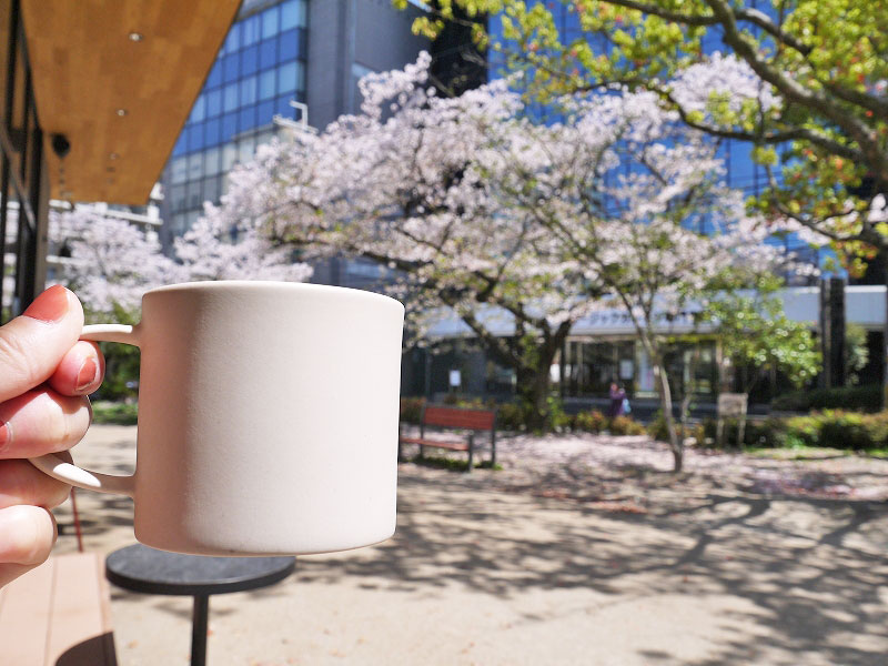 後はカフェラテ片手にお花見を楽しみましょうか。桜が散っても新緑を眺めながらお茶できそうですね♪