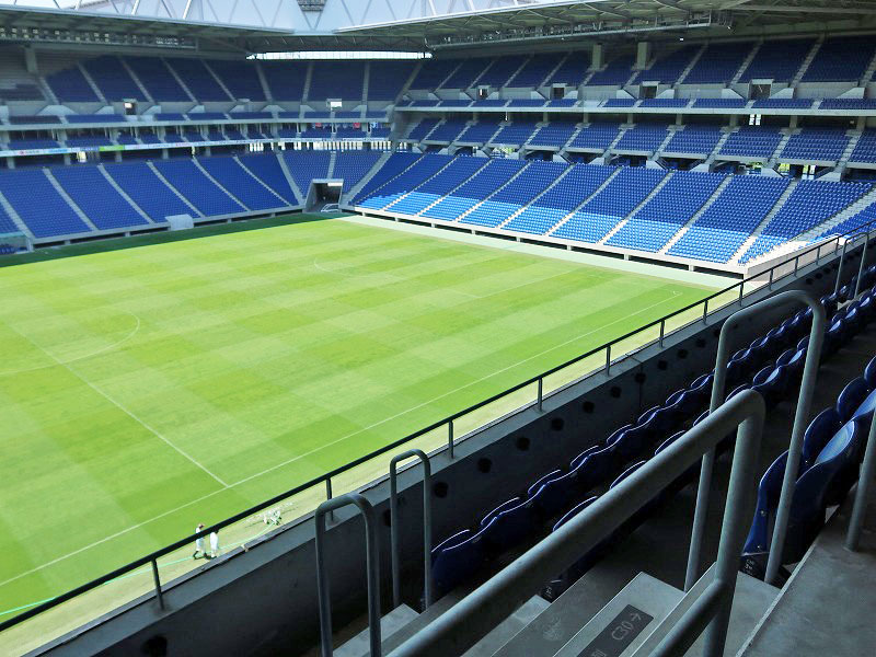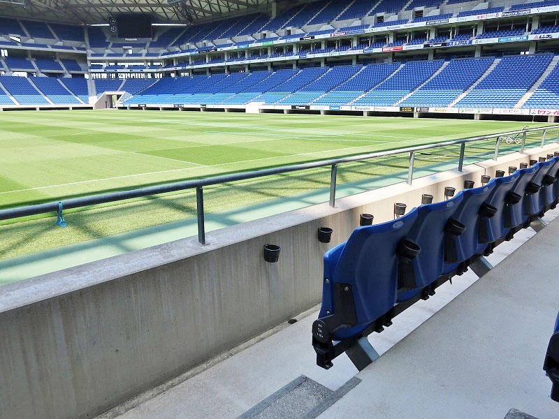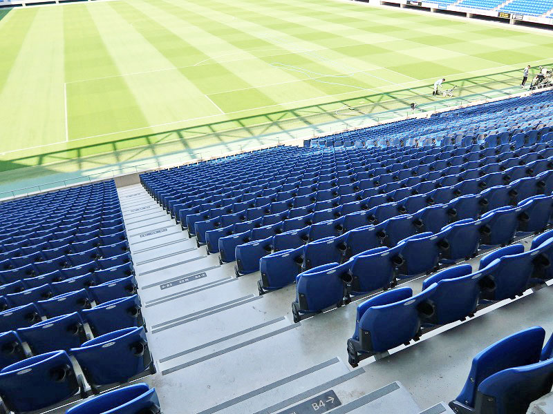 上層と言っても肉眼で見ると案外近くに感じますね。試合展開がわかりやすそうなので、初めてスタジアムに行く人はこちらが良いかもしれませんね。