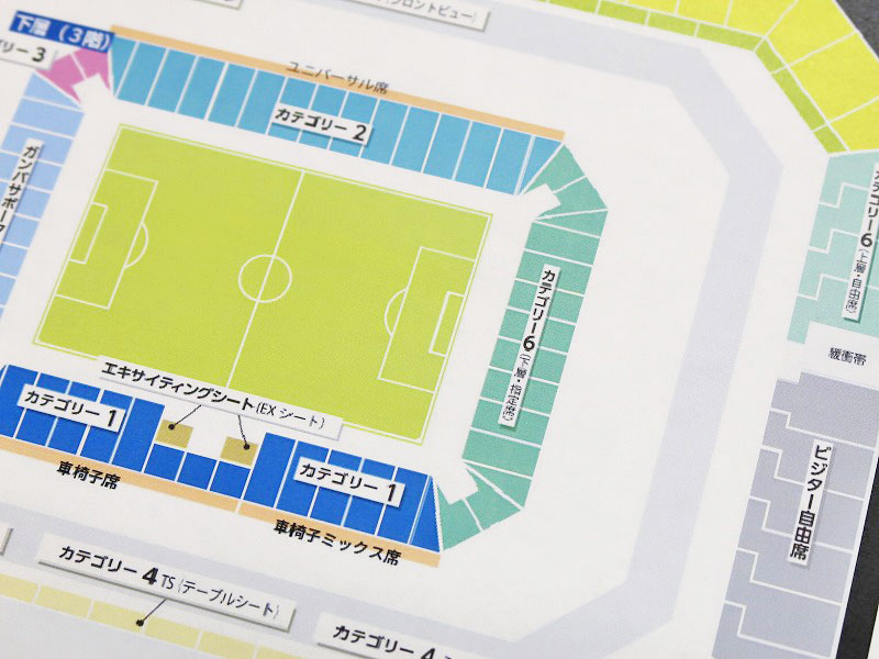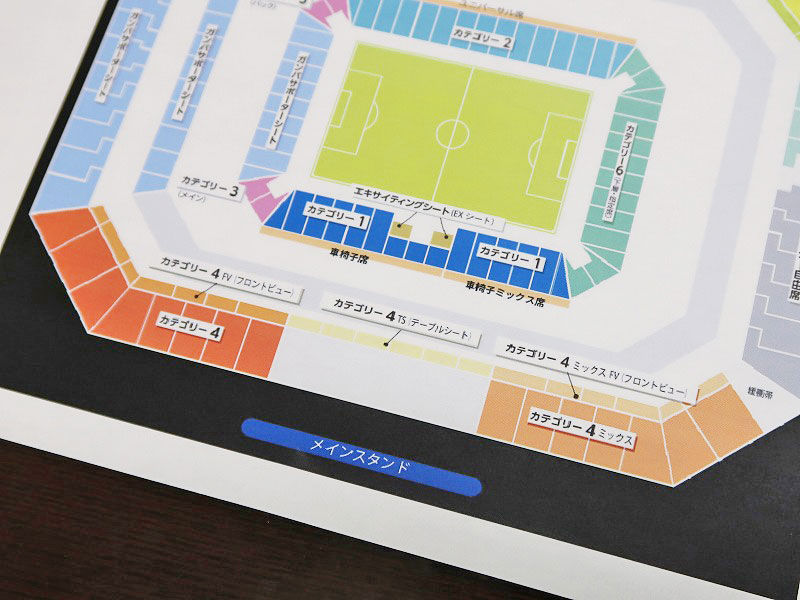 「カテゴリー5と同じ上層ですが、こっちはメインスタンド側の席なので、テレビと同じ放映角度で試合観戦ができますよ」