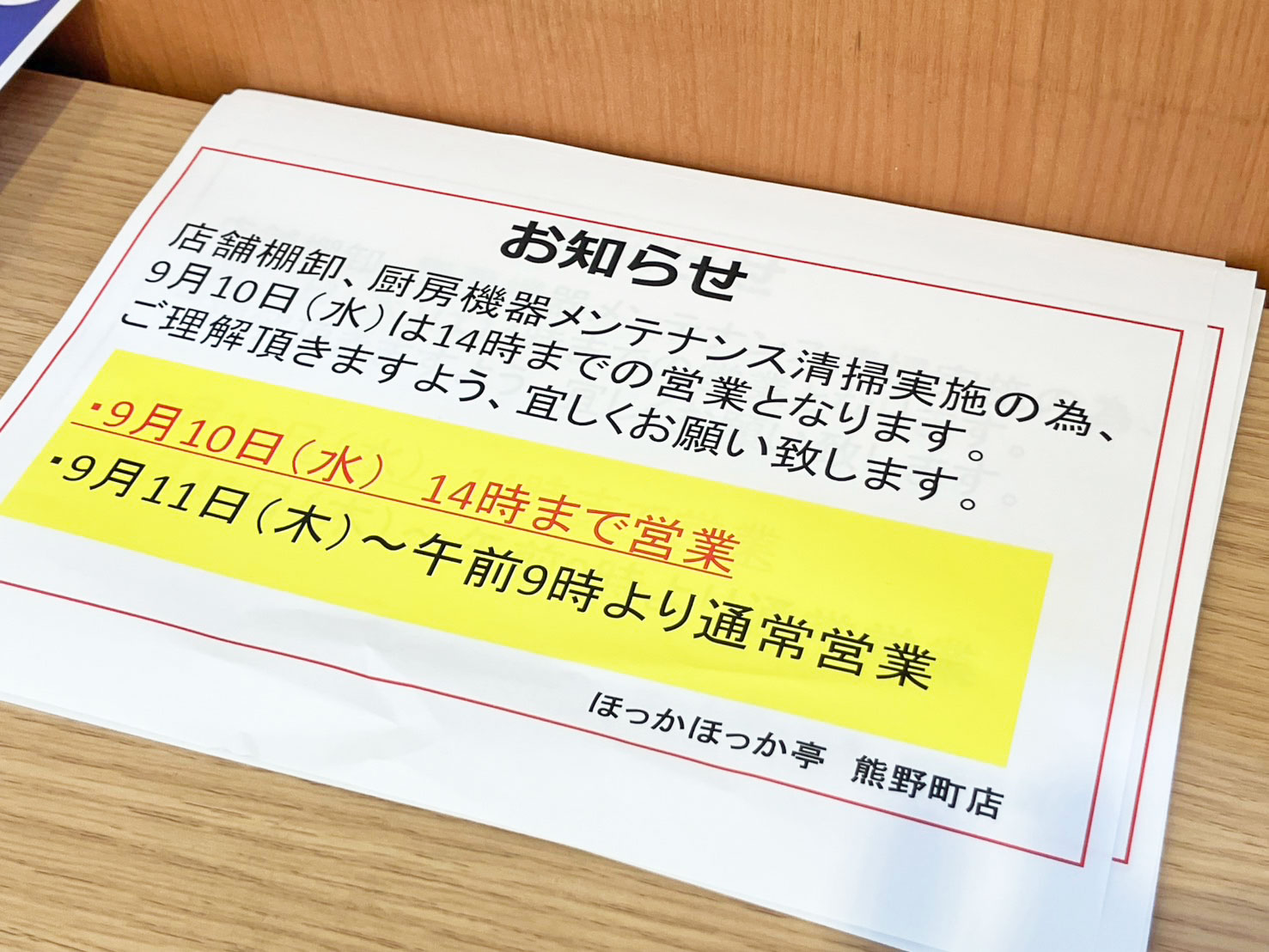 熊野町にある「ほっかほっか亭 熊野町店」が閉店するようです。