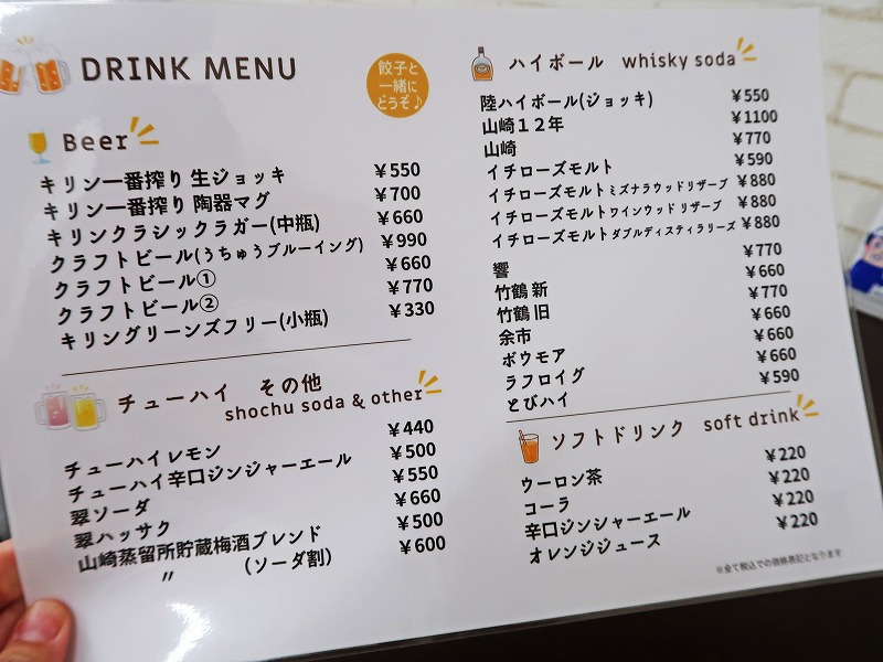 ドリンクもたくさん種類があります。餃子にビール、いいですねぇ♪※タップ/クリックで拡大