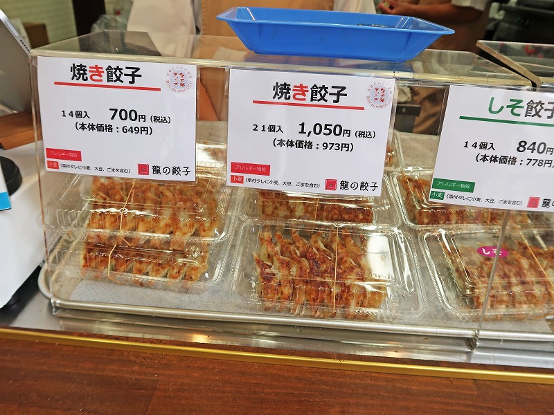 大きなテイクアウト用のカウンター窓にはいろんな餃子が並んでいます。