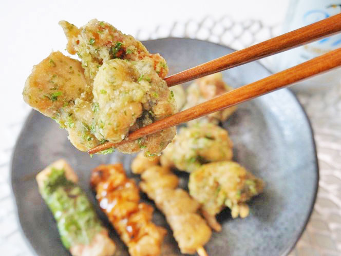 ※左から、もも たれ(169円)、梅しそ巻き(169円)、ぼんじり(169円)、のり塩からあげ120g(300円)/すべて税込