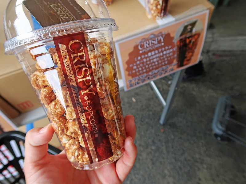 これは今回目玉商品のポップコーン。市販だと「600円」ほどするけど、今回のふれあいセールならでは「1つ200円」で買えると聞いていました。売り切れかと心配してましたが、まだ残ってますね。