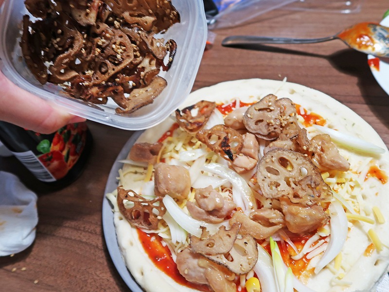 ※れんこんのきんぴら/この自由度がおうちピザの醍醐味ですよね