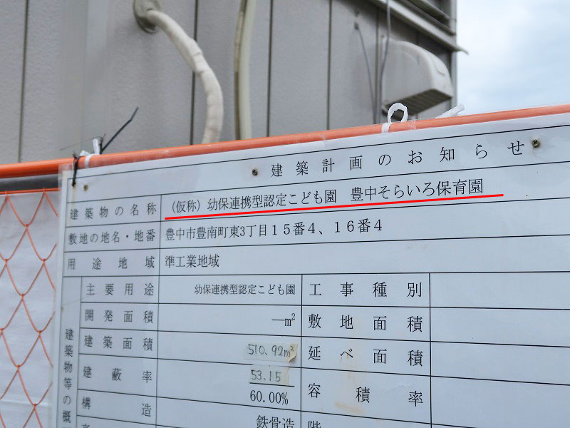 「(仮称)幼保連携型認定こども園 豊中そらいろ保育園」という名前で