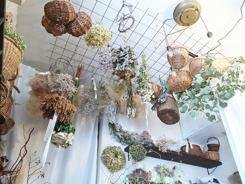 わぁ~!店内は驚くほど沢山のドライフラワーの作品で埋め尽くされています。