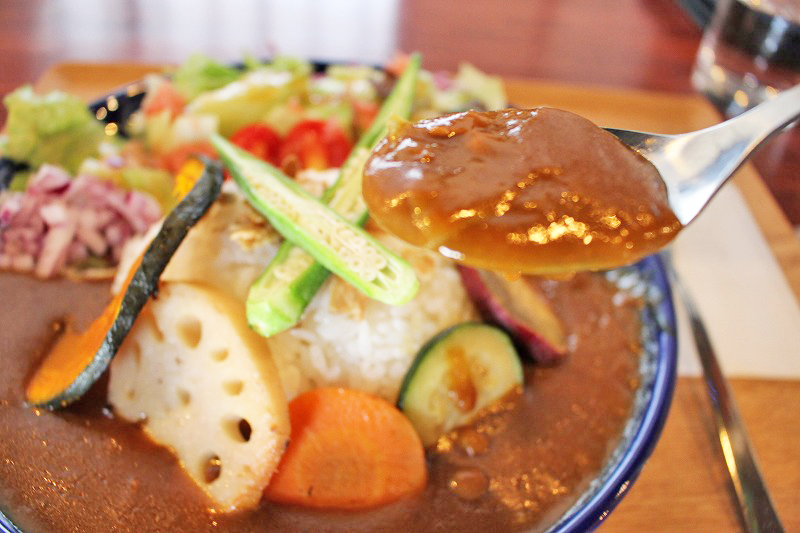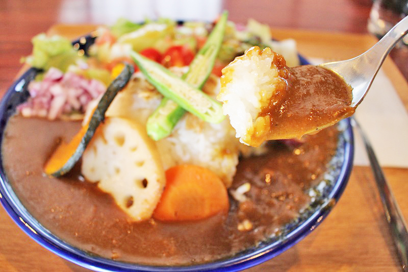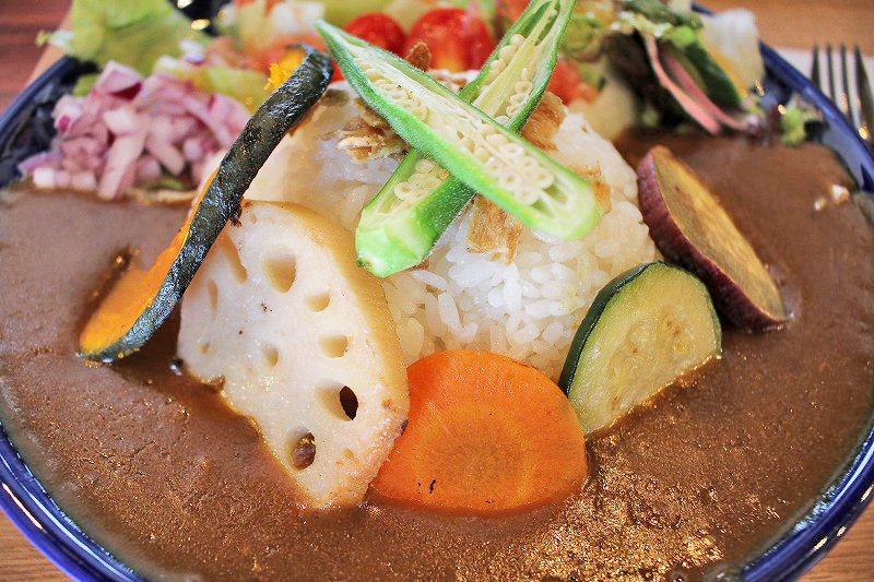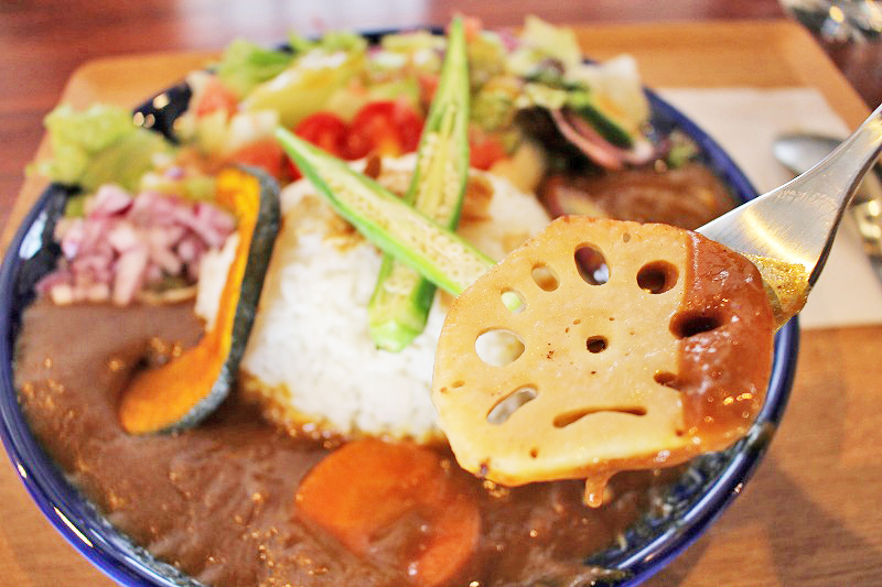 トッピングされたお野菜も、季節に合わせて変わるそうです。旬のレンコンはシャキシャキで鮮度の良さが分かります。
