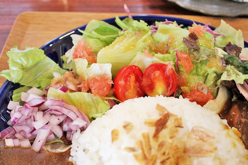 甘かったり辛かったり、口の中が大忙しなのでクールダウンさせるためにサラダをいただきましたが、なにこのドレッシング(驚)売ってほしいレベルの美味しさ。