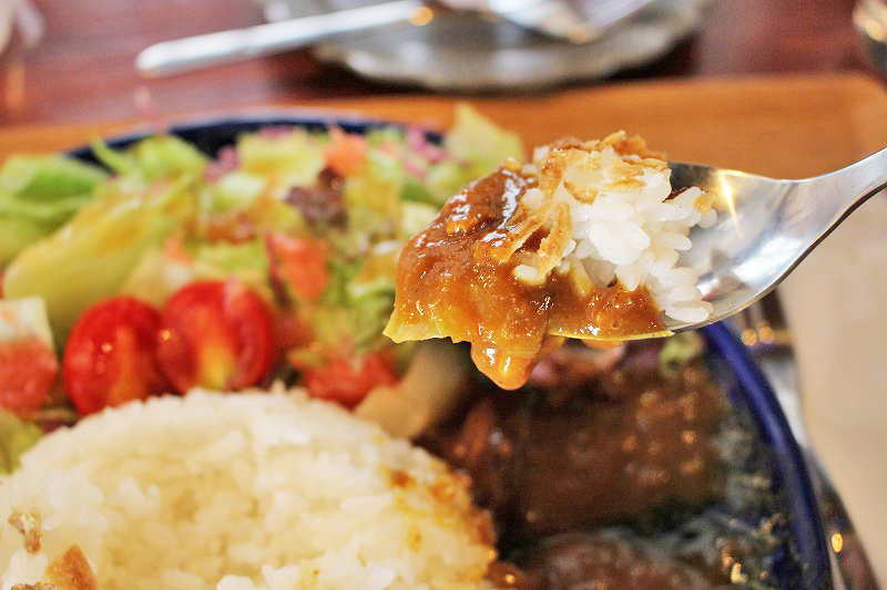 まずは主役のカレーからいってみましょう!野菜がしっかり溶け込んだ欧風カレーですね。欧風カレー、大好きです!!