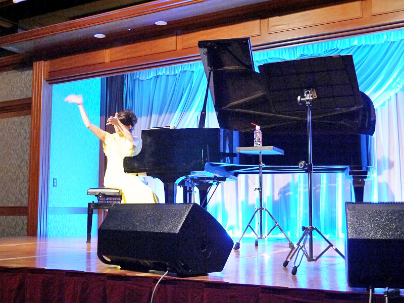 ここで岡本さんは退場。西村さんのピアノに戻ります。「Tea for Two(二人でお茶を)」~「幸せを運ぶピアノ」~「見上げてごらん夜の星を」と続けて演奏。