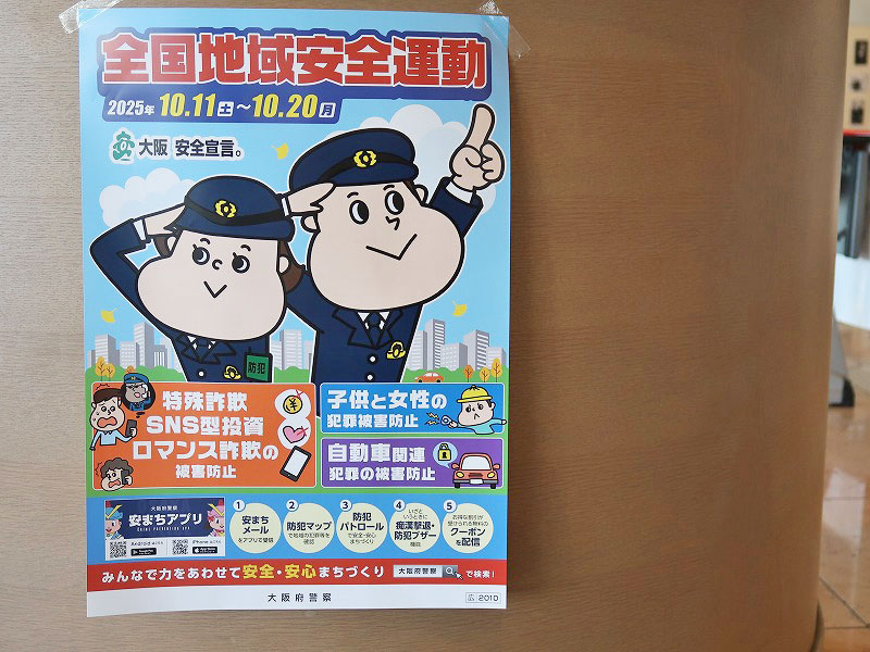 警察庁では、安心して暮らせる地域社会の実現を目的として、10月11日から20日までの10日間、「全国地域安全運動」を実施します。期間中、自主的な防犯対策への取組や地域で行われる防犯活動への参加を全国で呼び掛けます。