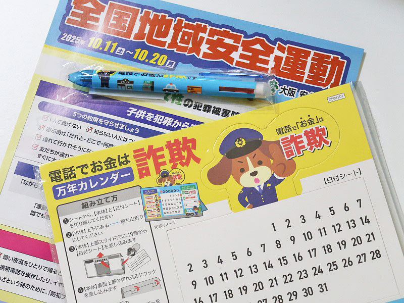 中でも被害が拡大しているという「特殊詐欺」について※来場者に配られた万年カレンダー