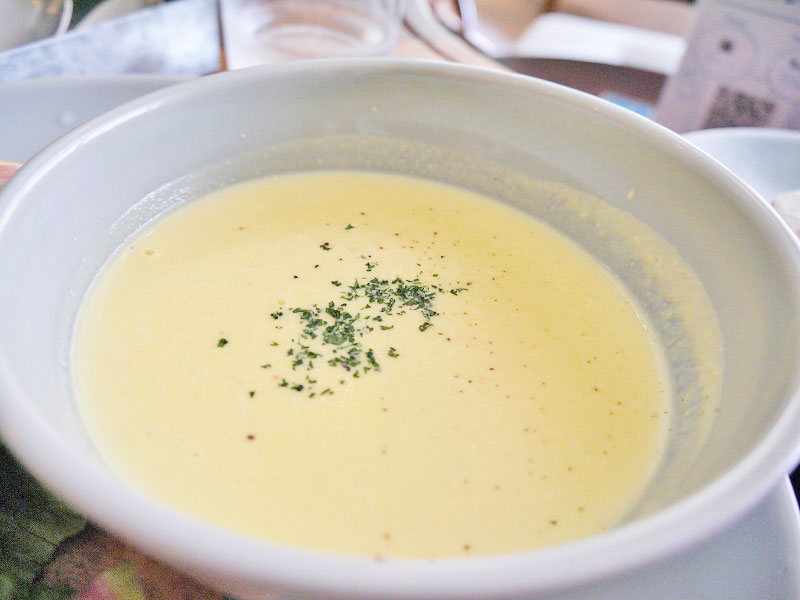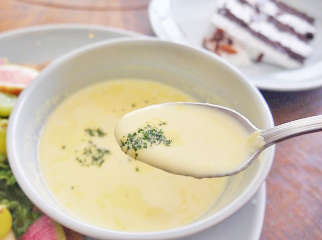とうもろこしの優しい甘さが引き立った、まろやかなスープです。