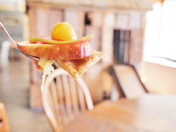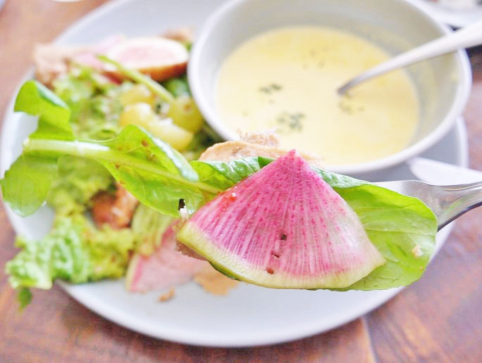 お、ガレットの中にはチーズも潜んでた。たっぷりお野菜と一緒に食べても幸福感。