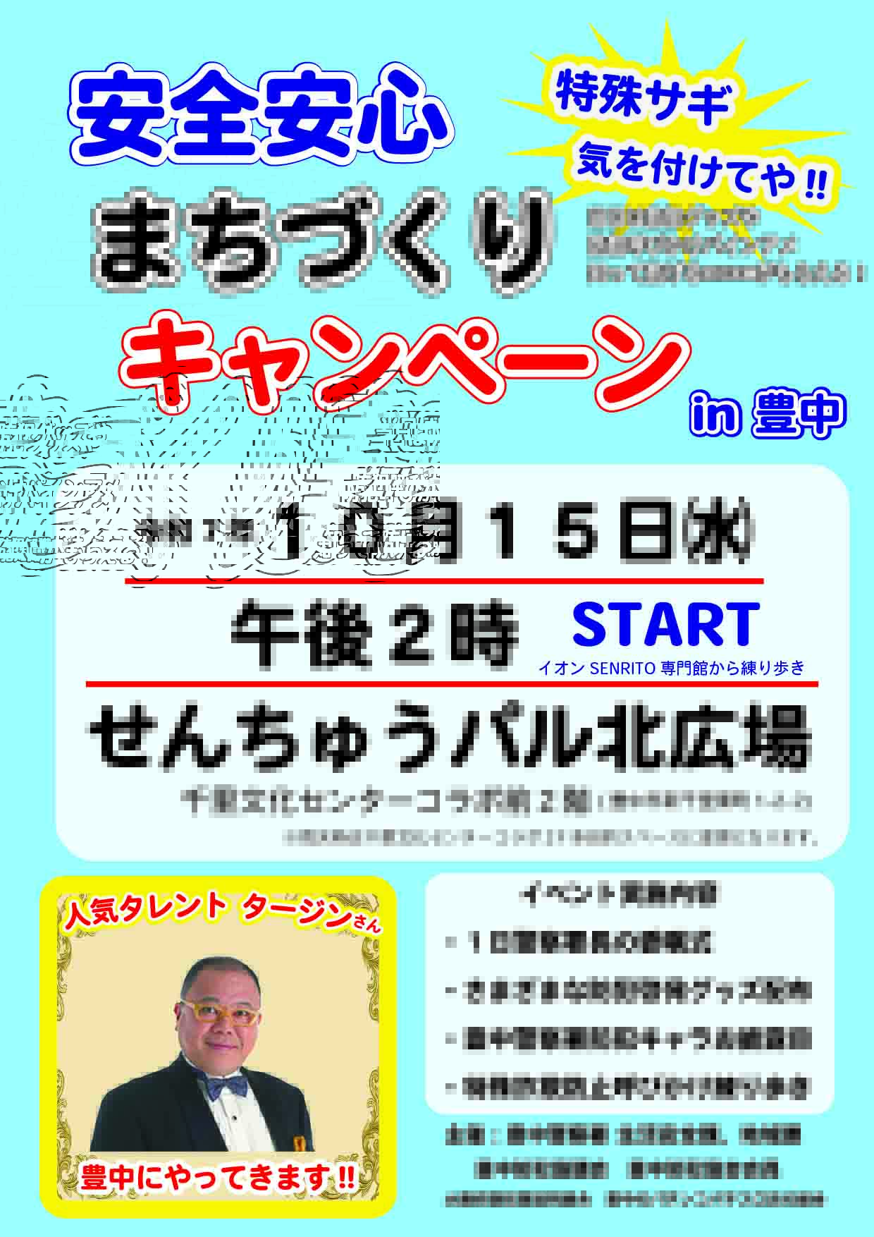 せんちゅうパルの北広場で「安心安全まちづくりキャンペーンin豊中」が開催されるようです。