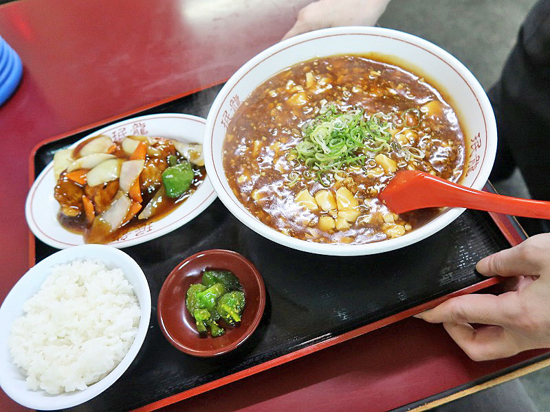 酢豚セット(ラーメンBセット)を注文。※麻婆ラーメンの場合は1,100円(税込)