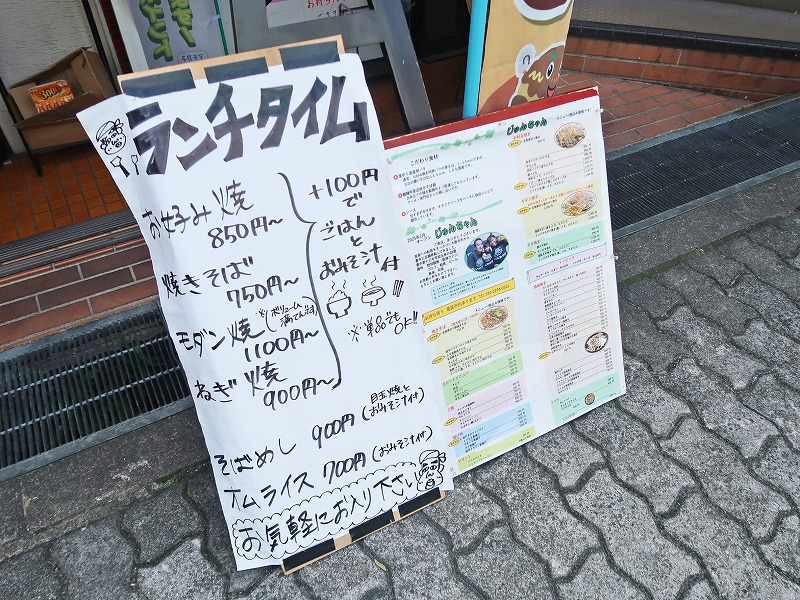 お好み焼きや焼きそば、オムライスなんかが予算内でいただけるのを発見。