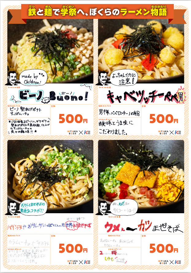 ② 🍜 9/23(火祝)@みつか坊主(12:00-18:00)ランチ+こども考案メニュー試食付き・最後にご家族にふるまいます