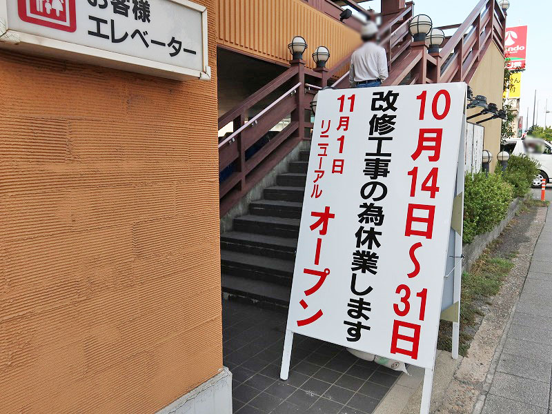 服部南町にある「かごの屋 服部店」が休店している/改修工事のため