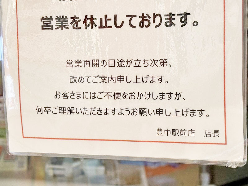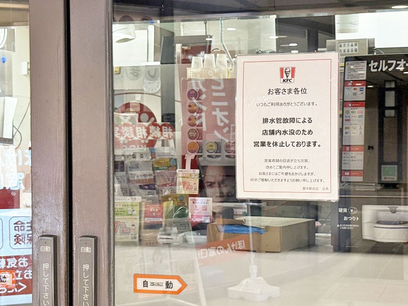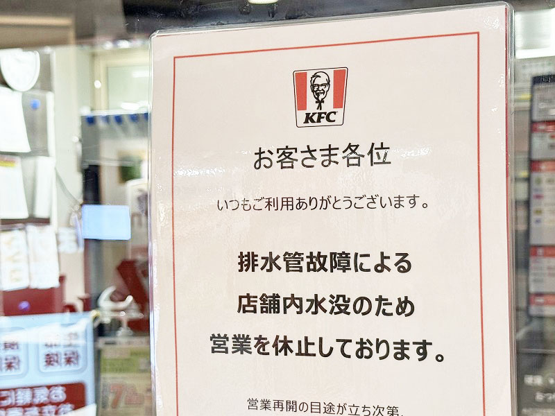 豊中駅前の「ケンタッキーフライドチキン豊中駅前店」が休業していました。