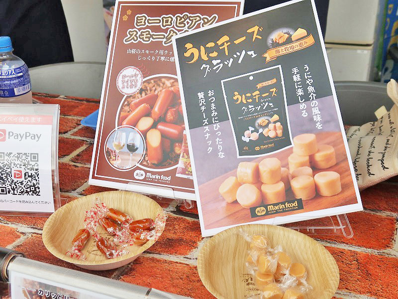 実は撮影中盤にTNNスポンサー「マリンフード」の社員さんが声を掛けてくださって「ブース出てるんで良かったら寄っていってくださいね」って教えてもらったんですよ。