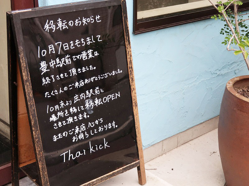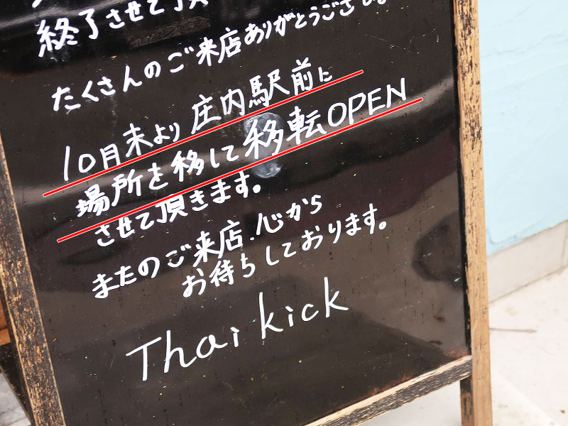 本町4丁目の「THAI KICK(タイキック)」が庄内駅前に移転するみたい/10月27日(月)オープン予定