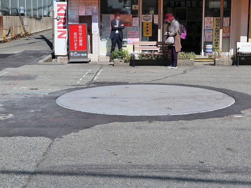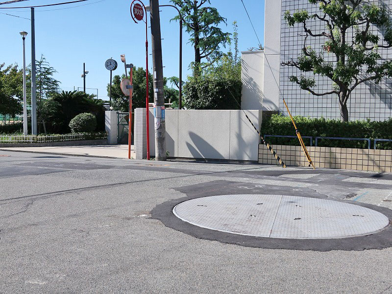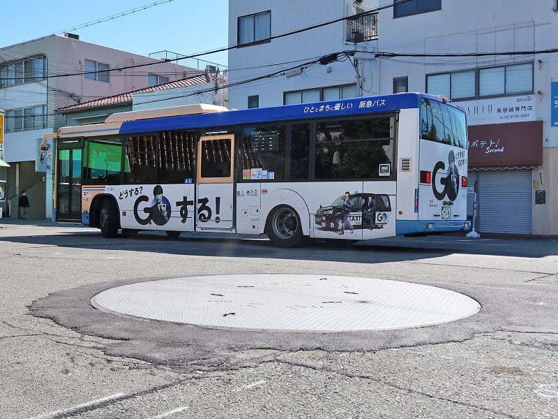 阪急バス、豊中高校前と梅花学園前にとても大きいマンホールのようなものがあります。