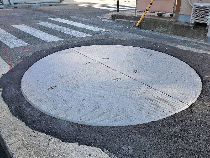 マンホールといいますか、乗ってみた感じ鉄板っぽいですね。