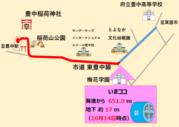 豊中市では、すでに埋まっている下水道管の流す力が大雨により追いつかない場合に、雨水を別ルートへ誘導し一時的に水をためる「貯留型の雨水バイパス管(新免幹線)」の整備工事を行ってるんですよね。