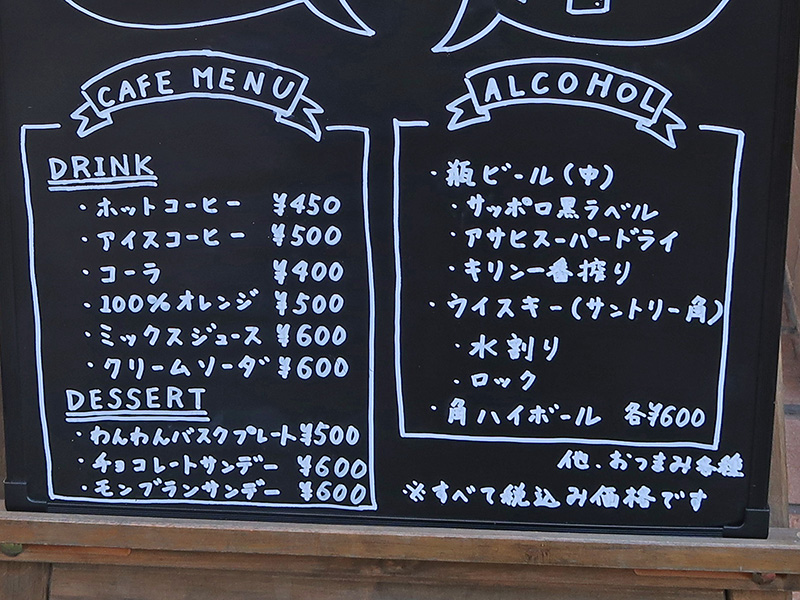 メニューも拝見しましょうか。カフェメニューとアルコールメニューがあり昼飲みもOK。