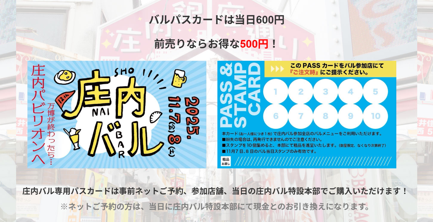 ※ホームページより引用/HPでの前売り券は、当日庄内バル特設本部にて「バルパスカード」と交換(現金のみ)