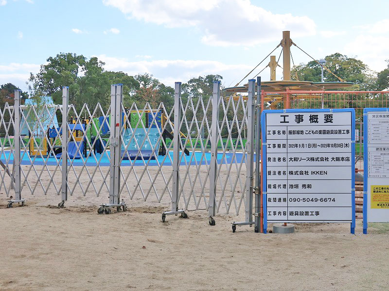 服部緑地にある「こどもの楽園」で工事していた新しい遊具が完成してる/10月31日から遊べるようになるって