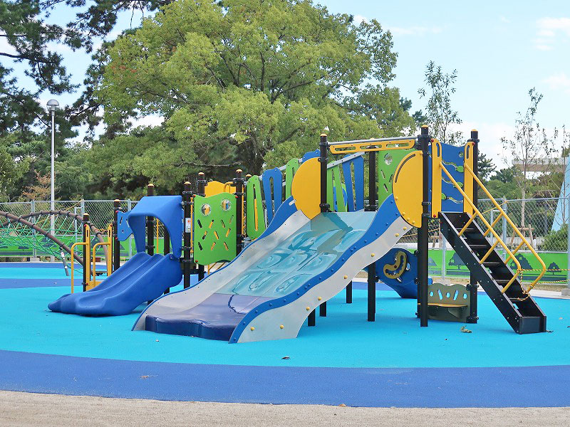 服部緑地にある「こどもの楽園」で工事していた新しい遊具が完成していました。