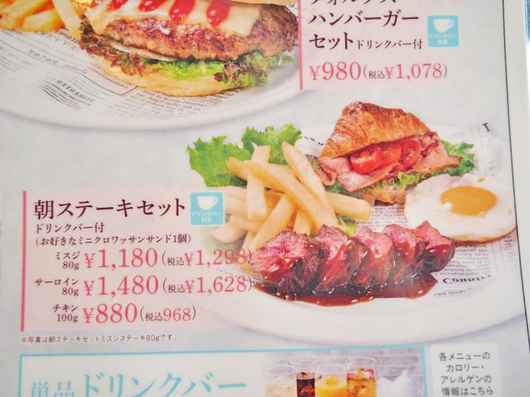 それでは注文は、パンもお肉もいただける「朝ステーキセット(ミスジ)」で