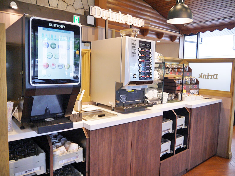 注文完了。ドリンクバー付きなので、取りにいきましょうか。