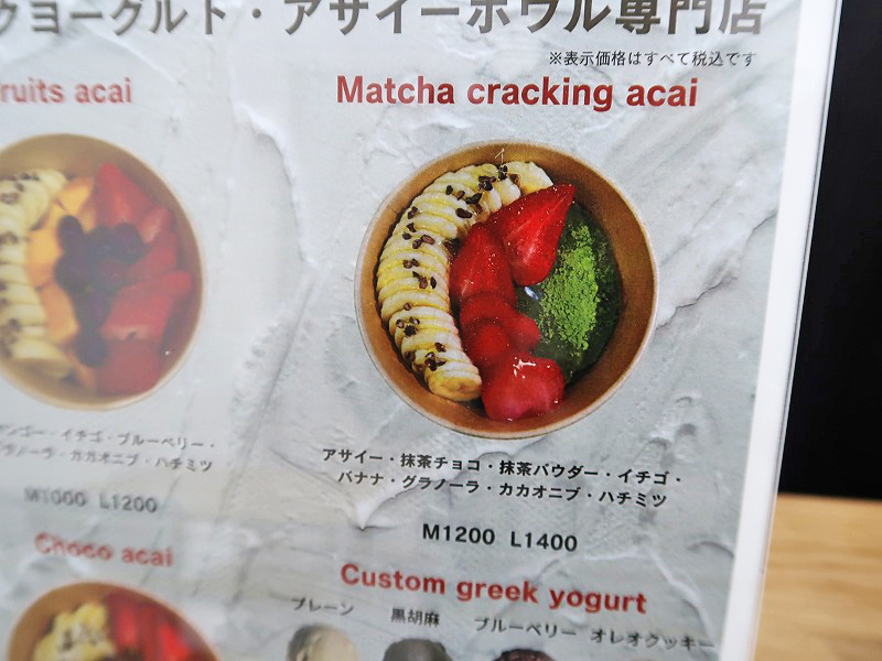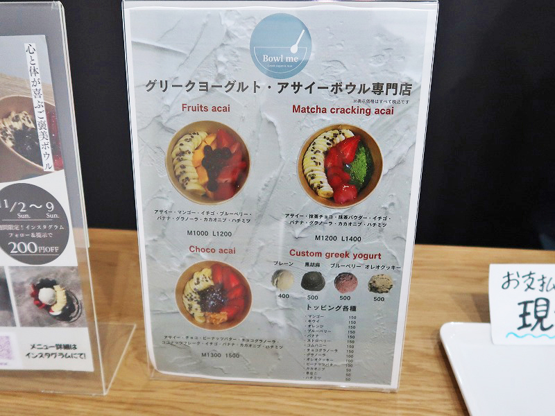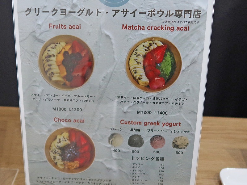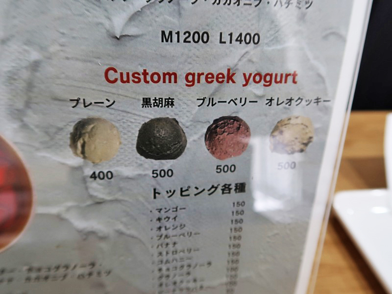 専門店だけあって、グリークヨーグルトとアサイーボウルで勝負している感じが伝わってきます。