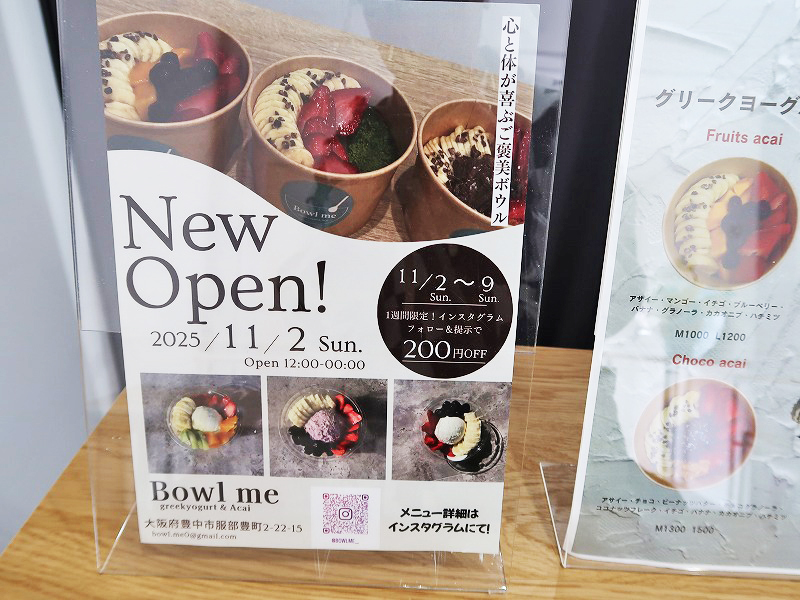 アサイーボールのお店Bowl meが11月オープン予定です。