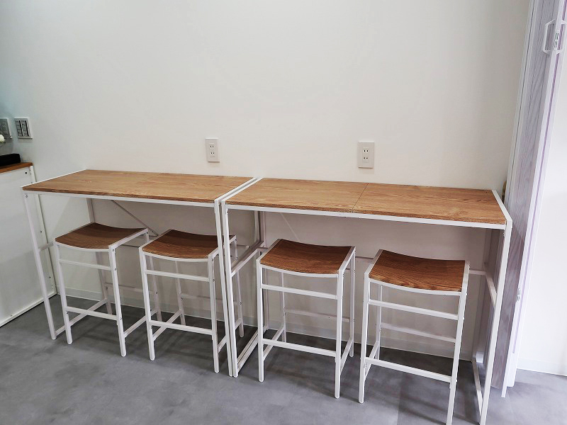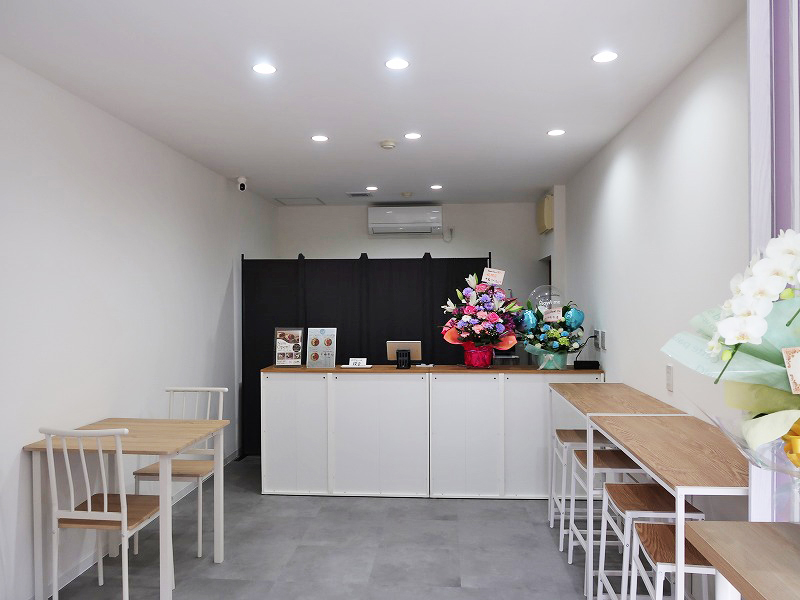 店内はこんな感じ。白い壁と木目調のテーブルでシンプルきれいな印象です。