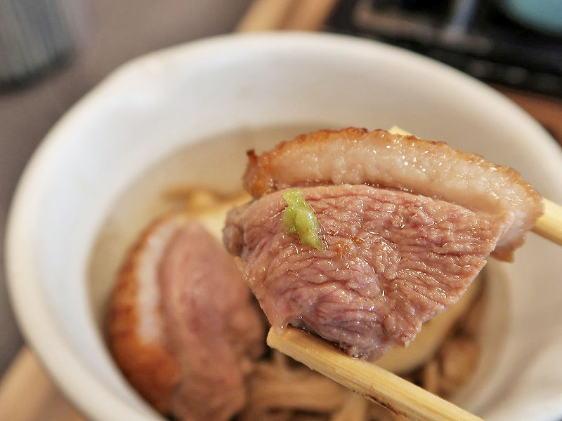 火の通った合鴨はムキュムキュとした食感。赤身の美味しさを柚子胡椒が引き立てます。あ~美味しかった!